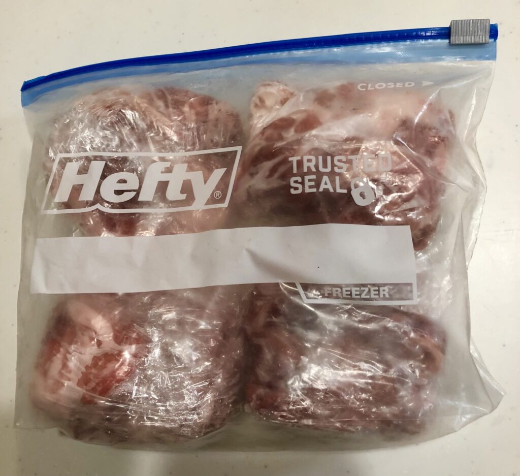 肉は1食分ずつ小分けにして冷凍します。