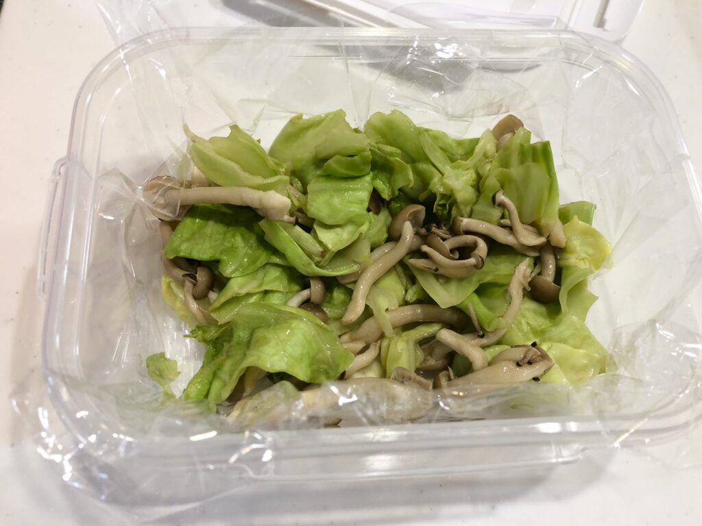 私の場合、キャベツを週末にたくさん洗ってちぎっておきます(7~8枚ぐらい)。