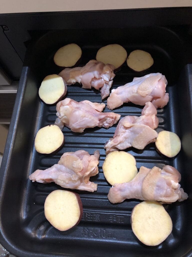 この日は、魚焼きグリルで鶏肉とさつまいもを焼きました。